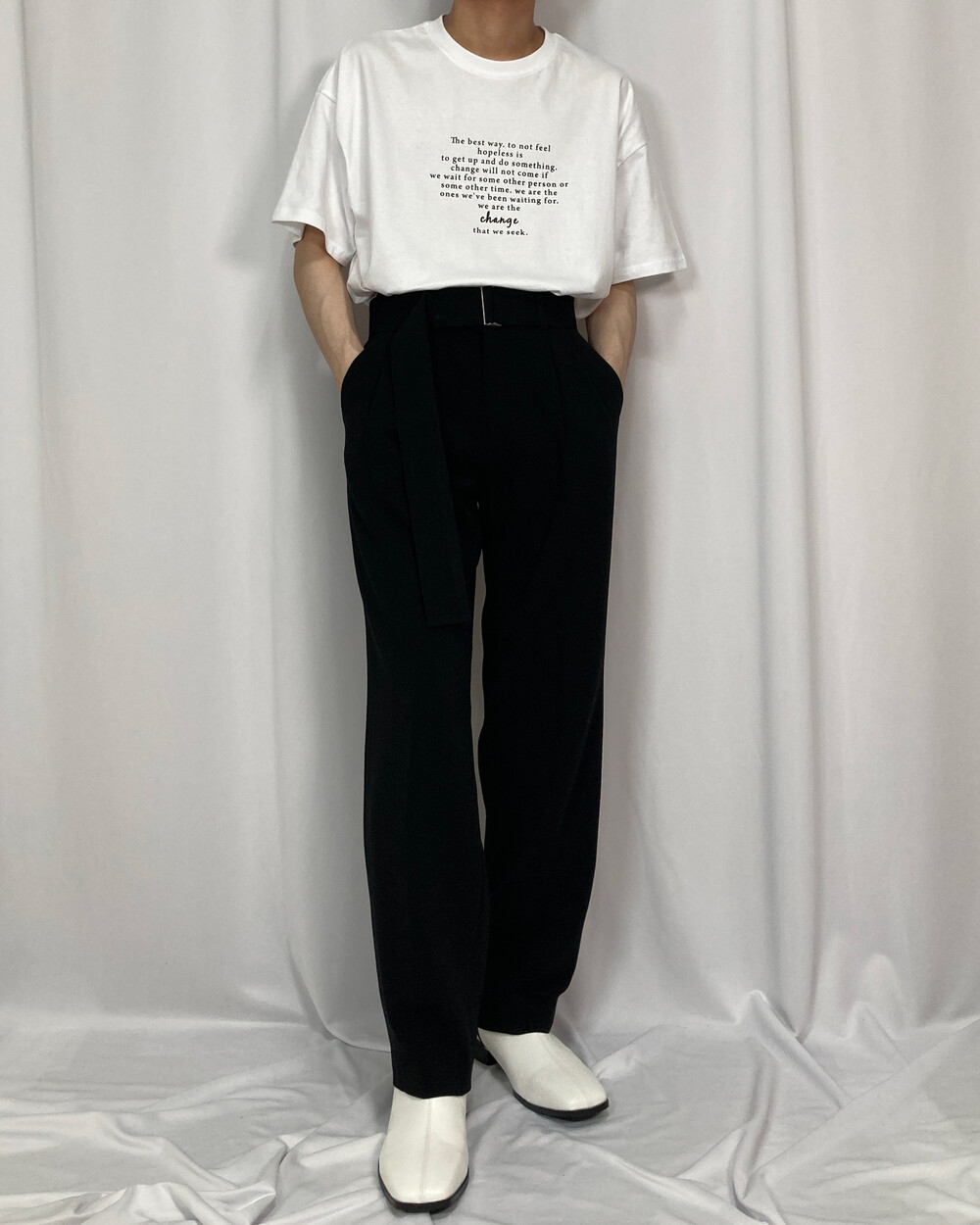 투턱 벨트 와이드 슬랙스