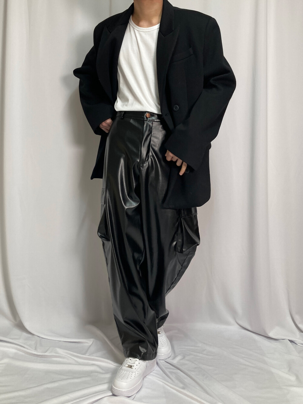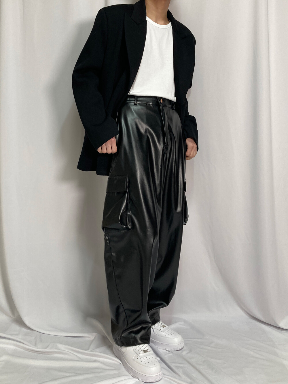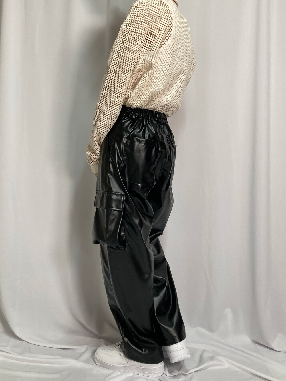 비건레더 보이프렌 카고팬츠