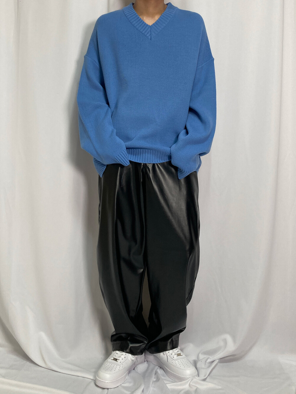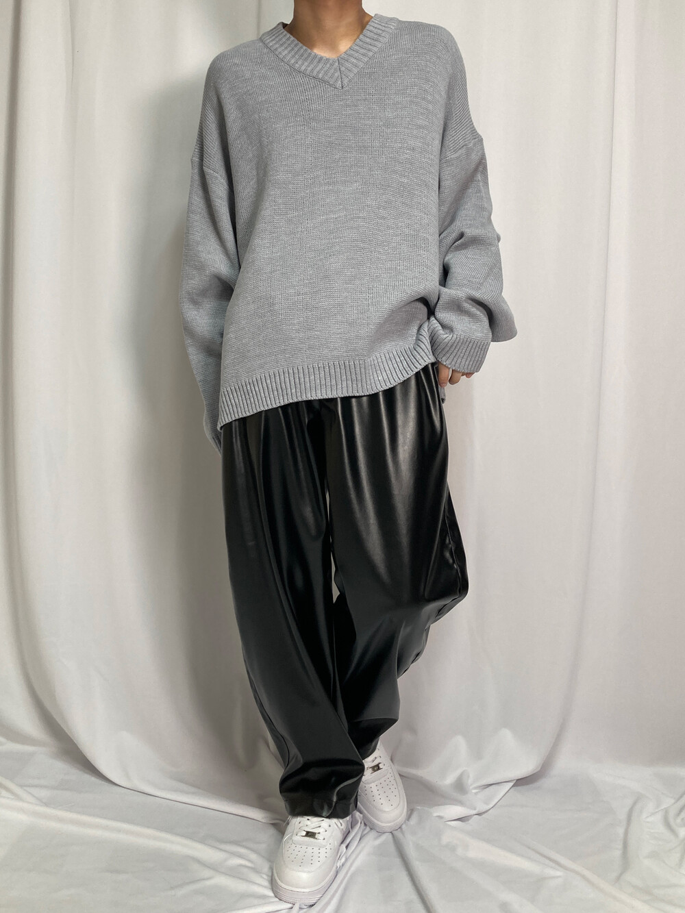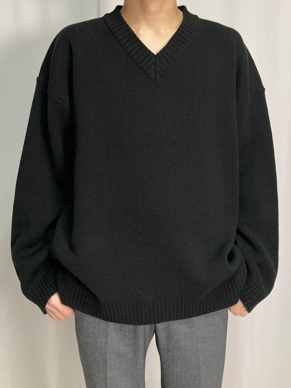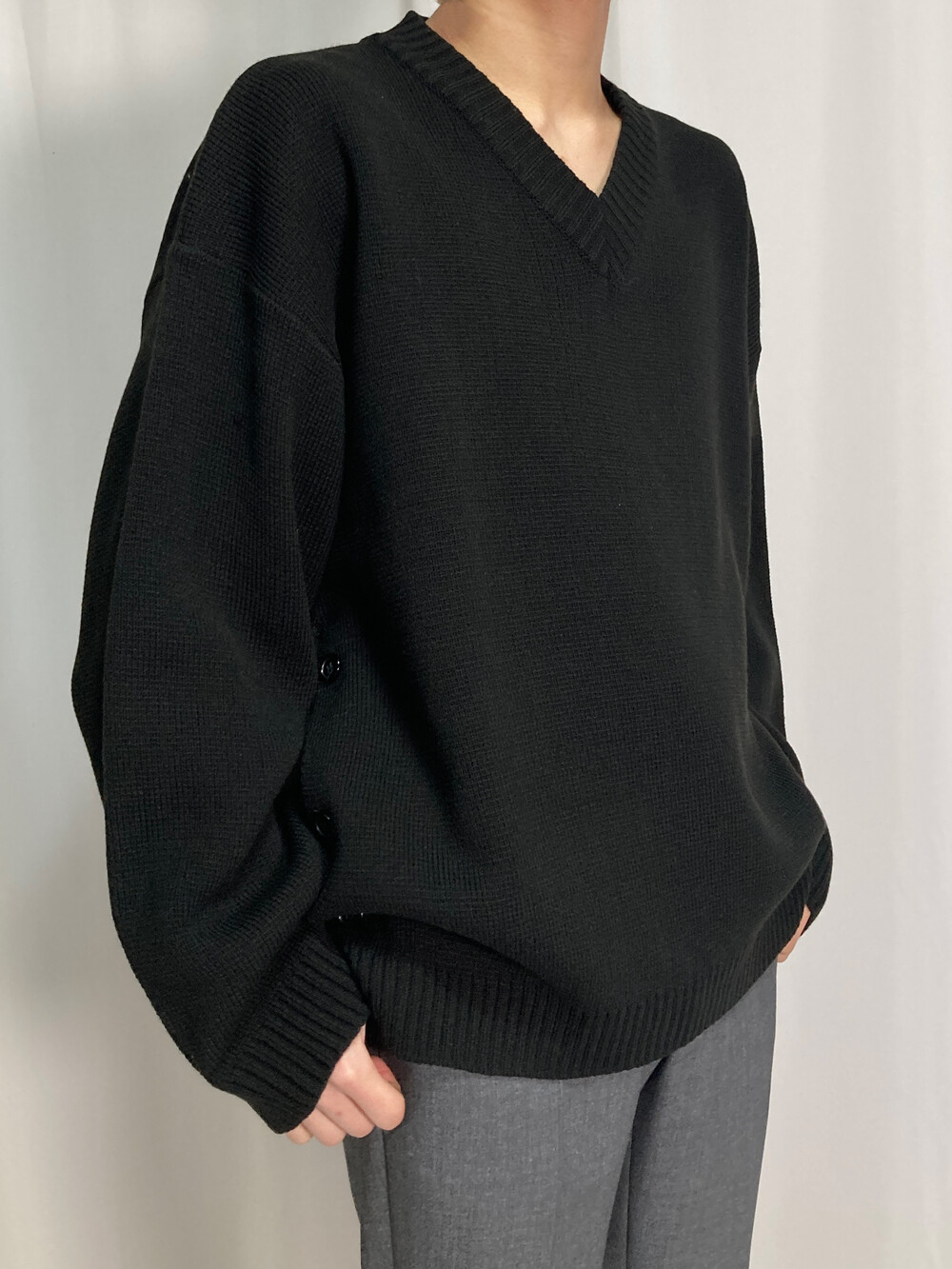 버튼 브이넥 니트