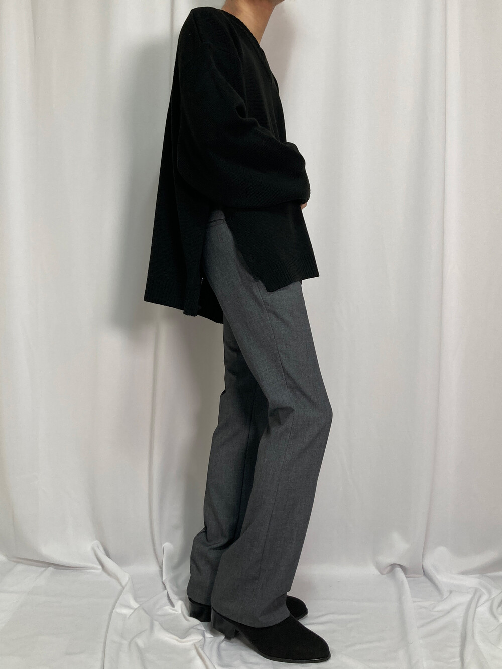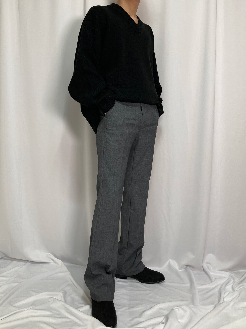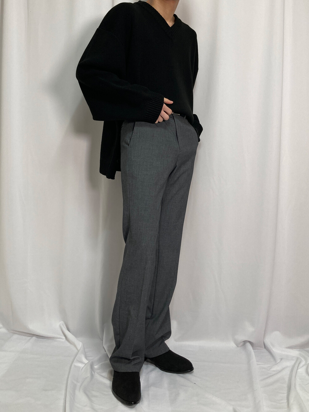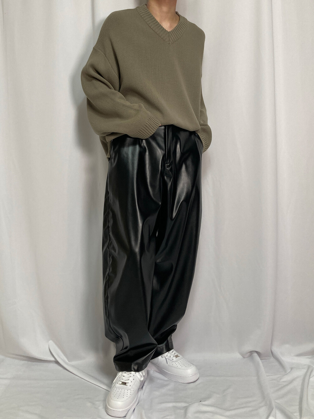 버튼 브이넥 니트