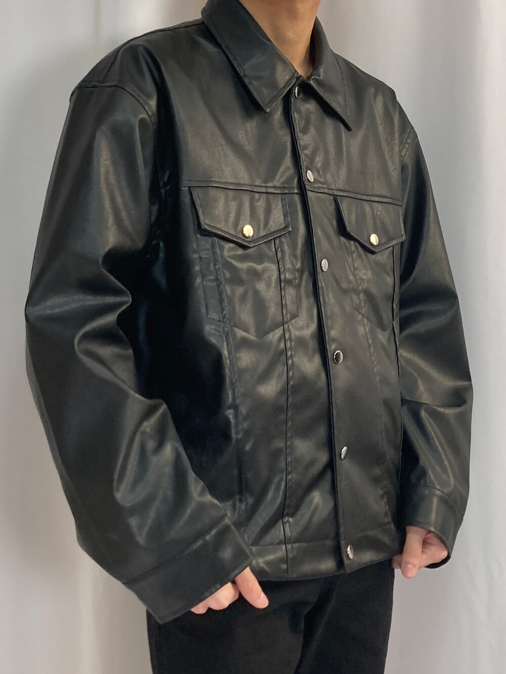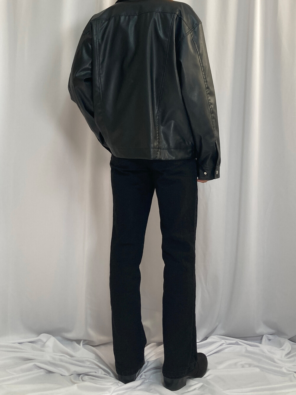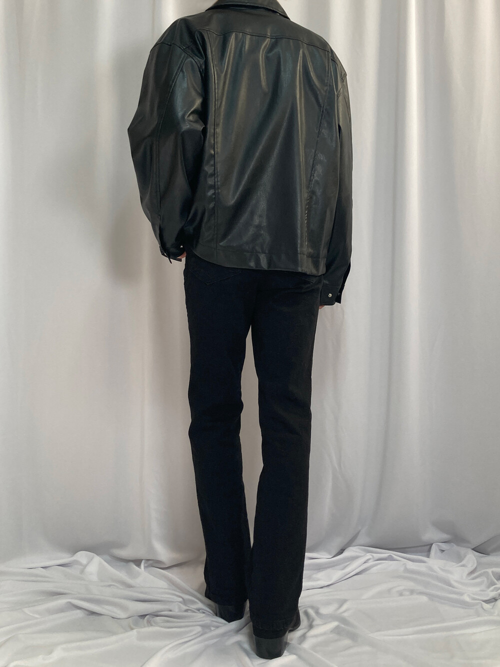 미니멀 크롭 레더 자켓