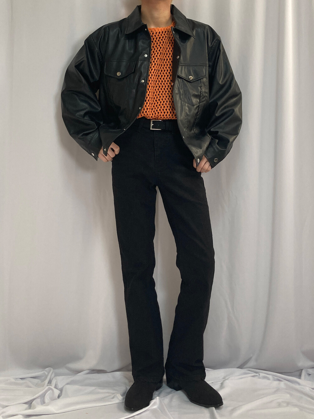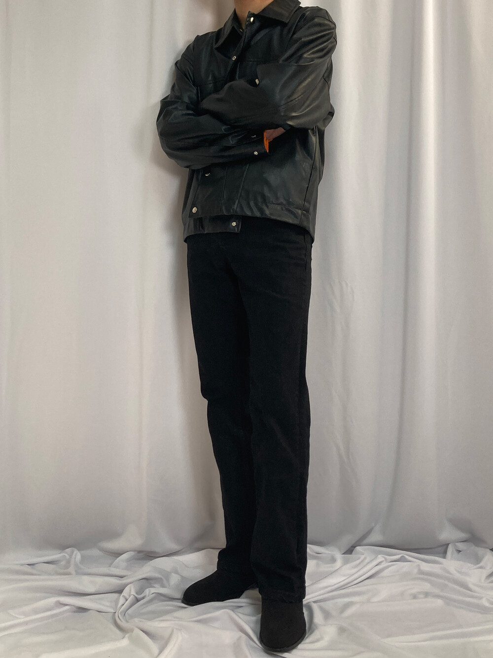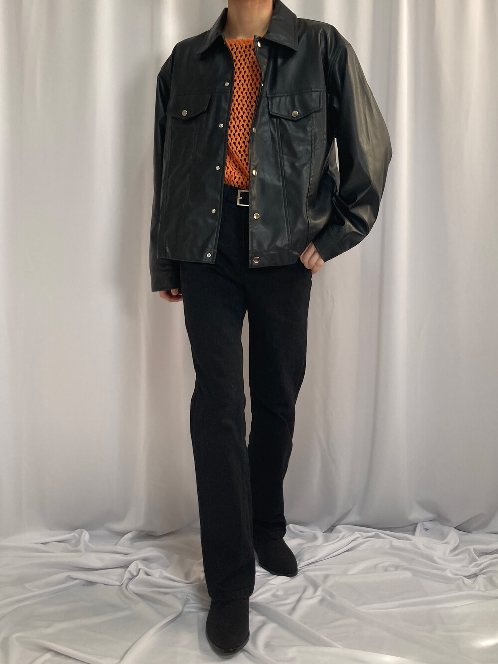 미니멀 크롭 레더 자켓