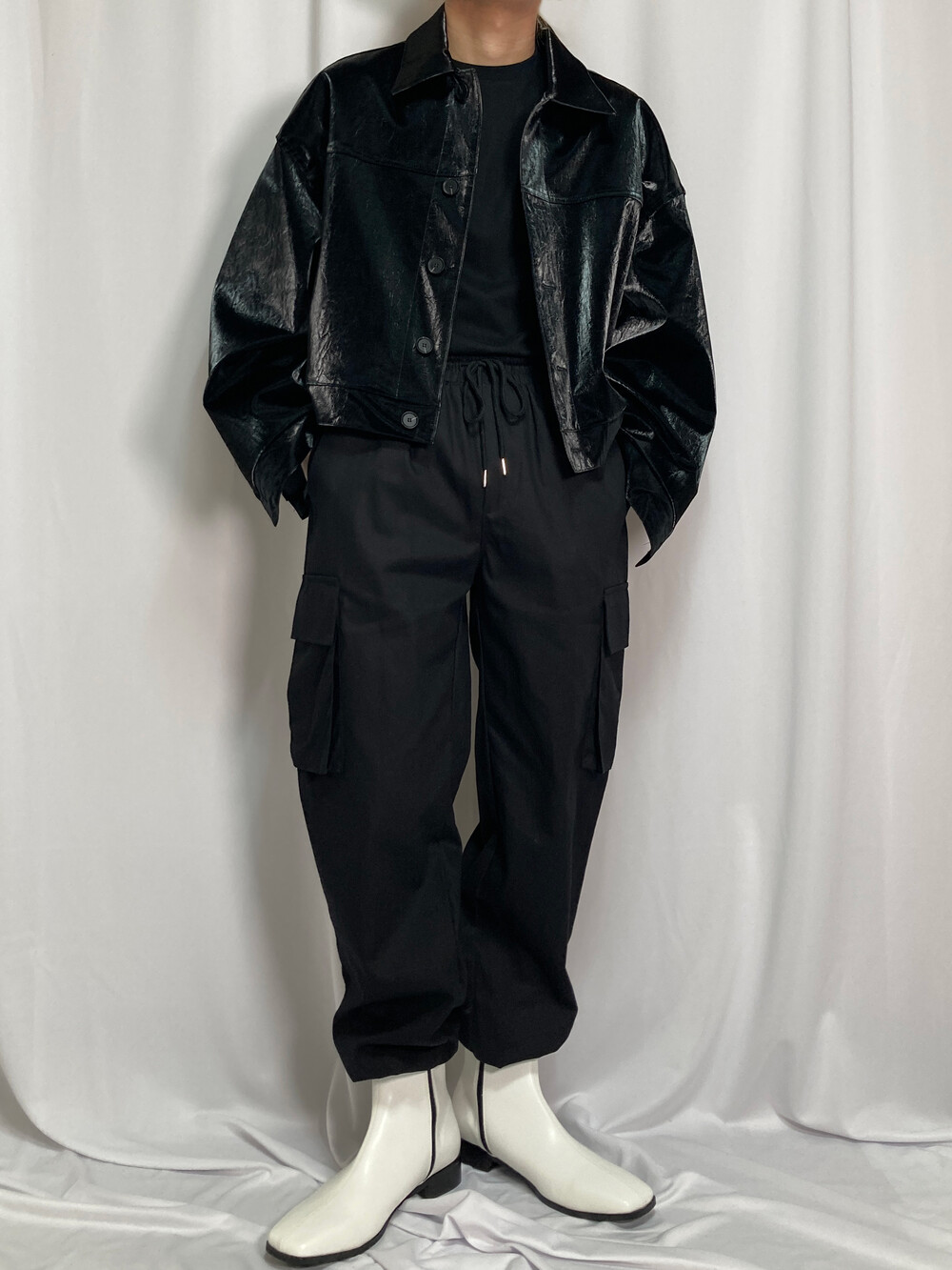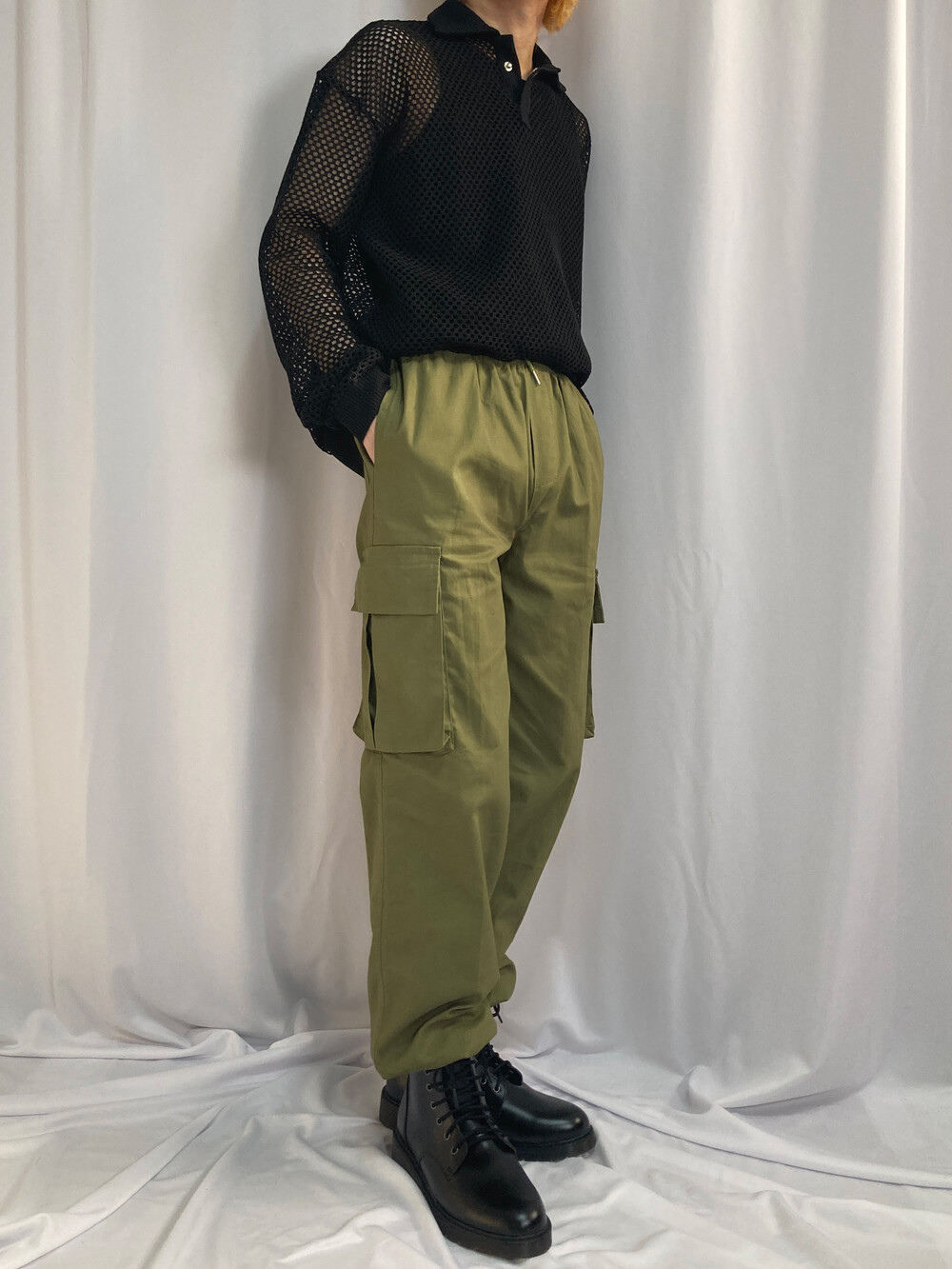 스트링 와이드 카고 팬츠